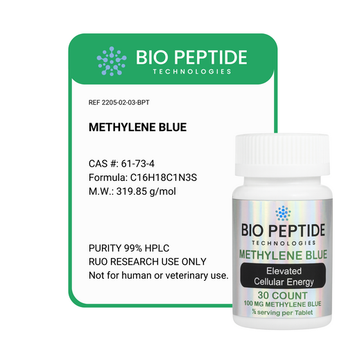 BiopeptitechIn stockMethylene Blue – 100 mg Tablets (Research Grade) Product OverviewOur Methylene Blue tablets deliver a precise 100 mg per serving, offering a consis...