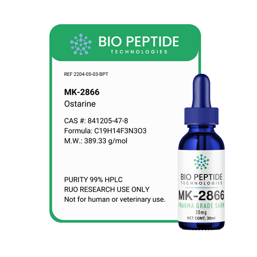 BiopeptitechIn stockMK-2866, also known as Ostarine, is a selective androgen receptor modulator (SARM) commonly studied in preclinical research for its effects on body...